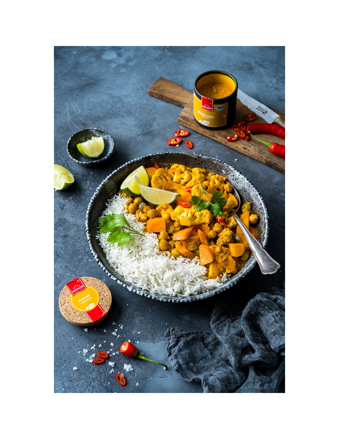 Blumenkohl-Kichererbsen-Curry mit Reis