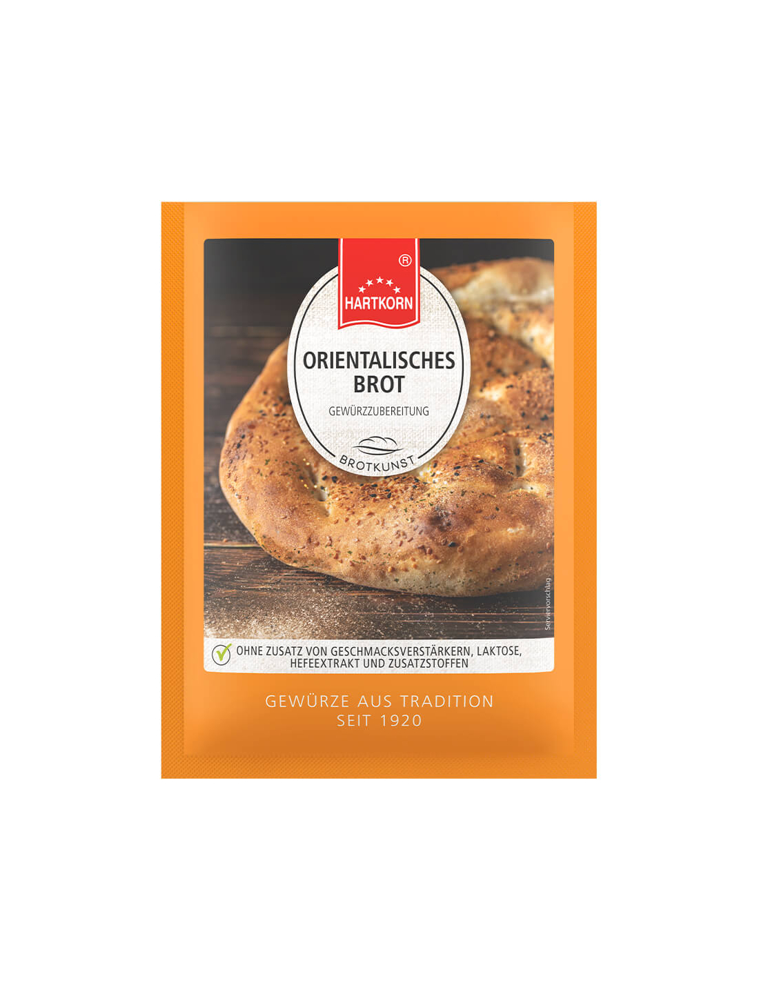 Abwechslung muss sein: Ein Fladenbrot mit Tomaten und Thymian kennst du sicher, oder? Aber wie wäre es mal mit einer orientalischen Variante? Dann schnapp dir 500 g Weizenmehl (Type 550), 10 g Frischhefe, 375 ml lauwarmes Wasser, 3 EL Olivenöl,1 1/4 TL Meersalz, je 4 EL Olivenöl und Wasser zum Beträufeln und 1 Packung Brotgewürz. Vom Brotgewürz benutzt du 1 TL für den Teig und den Rest dann zum Bestreuen des Brots. Die Zubereitung ist kein Hexenwerk. Als Erstes zerbröselst du Hefe und verknetest sie mit Meersalz, Wasser, 1 TL Brotgewürz und Olivenöl zu einem Teig. Dieser sollte leicht klebrig sein. Um ihn auf dem Backblech auf ca. 30/20 cm auszurollen, bestäubst du den Teig mit etwas Mehl. Danach deckst du ihn mit einem feuchten Küchentuch ab und lässt ihn an einem warmen Ort für ein bis zwei Stunden gehen. Den Ofen heizt du auf 190 °C (Ober-/Unterhitze) vor. Mit einem Kochlöffelstiel drückst du Löcher in den orientalischen Brotteig, den du mit Olivenöl und Wasser beträufelst. Jetzt kommt das restliche Brotgewürz zum Einsatz. Das streust du nämlich über den Teig. Der kommt im Anschluss auf der mittleren Schiene in den Ofen, um ihn für 25 Minuten goldgelb zu backen. Wenn du das Brot mit etwas Alufolie abdeckst, verhinderst du, dass es zu schnell zu dunkel wird. Am besten schmeckt das Brot, wenn es noch lauwarm servierst.