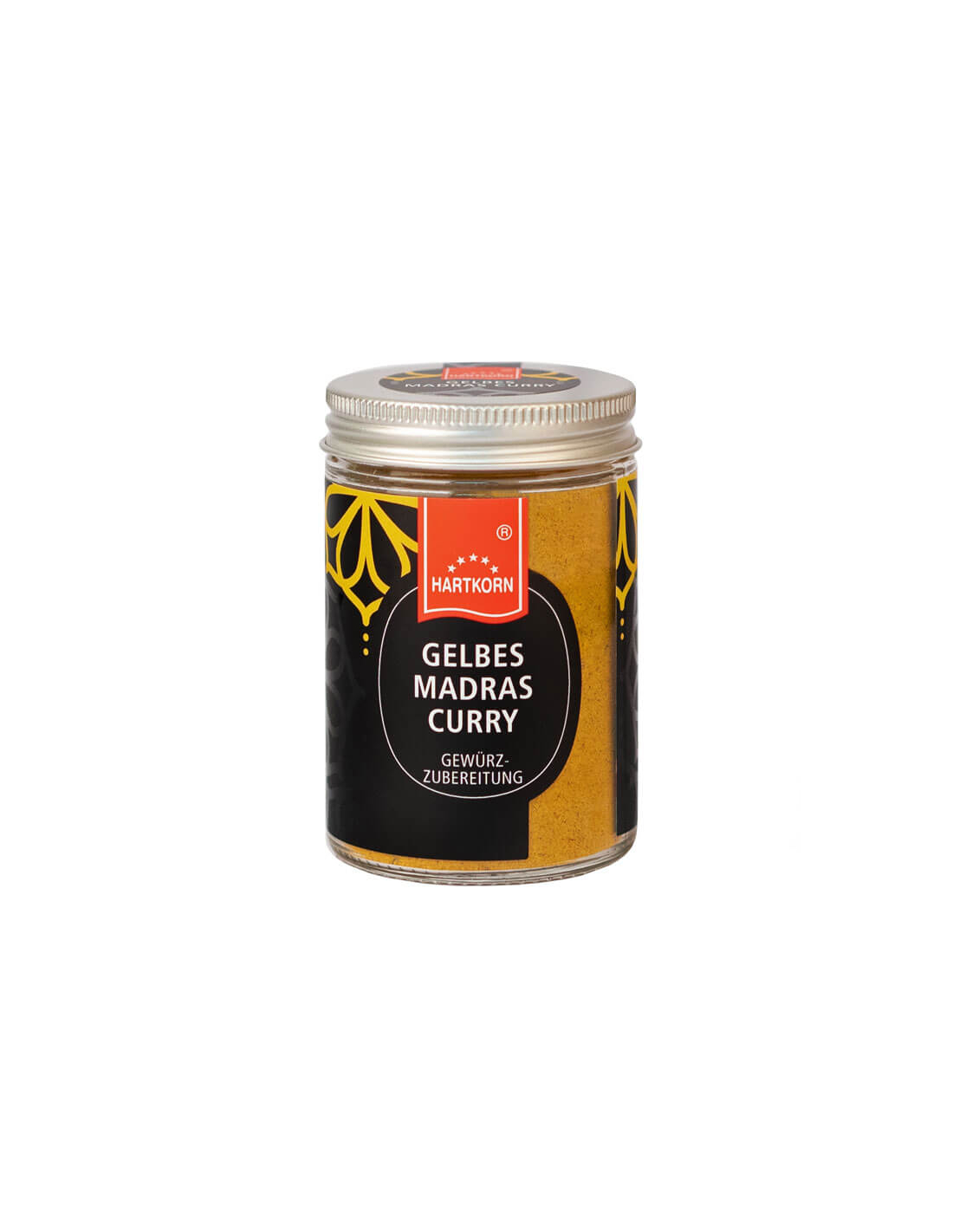Gelbes Madras Curry, mild Gourmetgewürz im Glas
