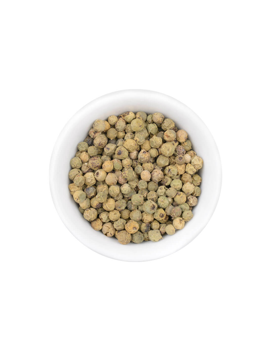 Grüner, schwarzer, weißer und roter Pfeffer stammen von der gleichen Pflanze. Die Beeren unterscheiden sich nur im Reifegrad. Grüner Pfeffer wird aus unreifen, früh geernteten Früchten gewonnen und anschließend unter hoher Temperatur schnell getrocknet. So bleibt seine grüne Farbe erhalten und das Aroma besonders mild.