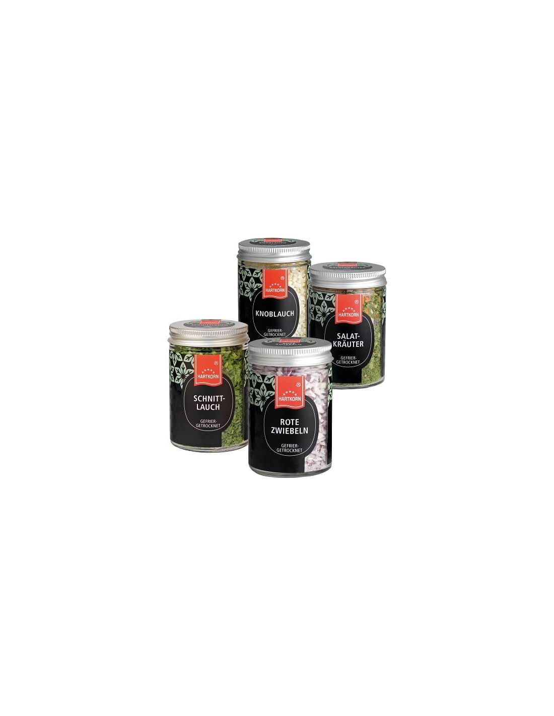 So einfach hast du dir noch kein Dressing gezaubert: Schnapp dir unser Salat-Schnellstarter Gewürzset aus gefriergetrockneten Kräutern und mische sie nach Belieben zusammen. Etwas Olivenöl, Essig, Honig und Salz dazu und schon kann das Ganze auf deinen Lieblingssalat. Dank der schonenden Gefriertrocknung schmecken die facettenreichen Salatkräuter, der würzige Knoblauch, die süßlichen Zwiebeln und der scharfe Schnittlauch fast so, als hättest du sie gerade erst aus dem Garten geerntet!