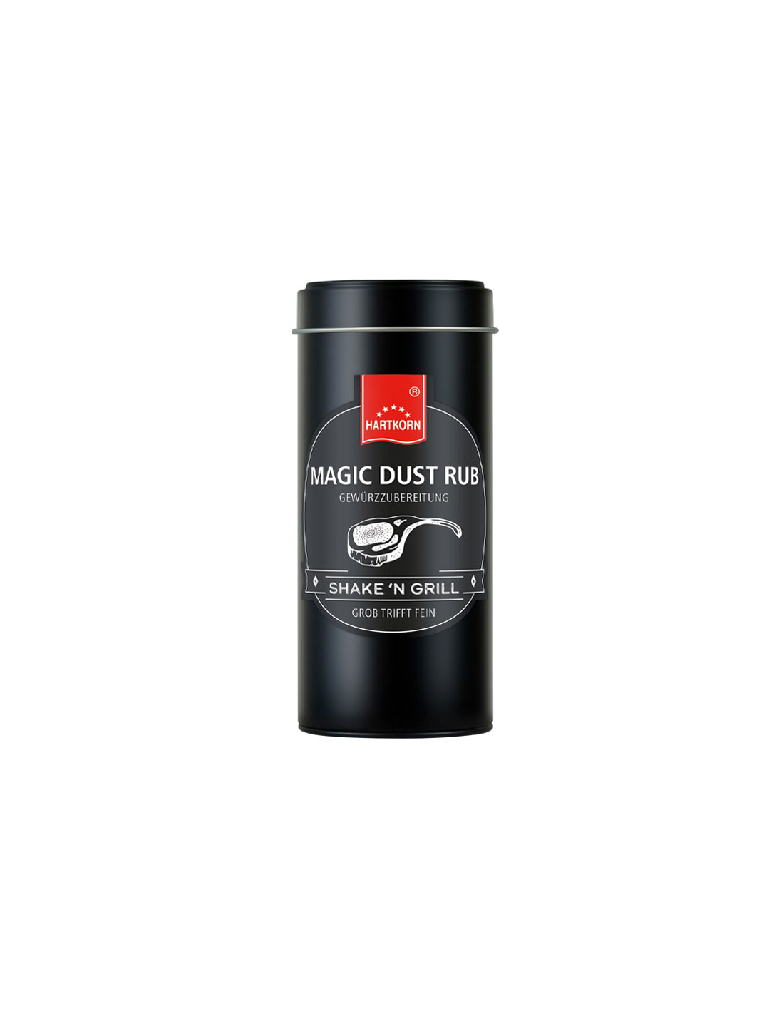 Grob trifft fein: Die Gewürzzubereitung mit dem mystischen Namen Magic Dust Rub bietet die perfekte Mischung aus geräuchertem Paprika, Knoblauch, Kreuzkümmel, Thymian, Pfeffer, Chili, Oregano, Piment und Koriander. Zusammen mit Rohrzucker und Meersalz wird daraus ein würziges, rauchiges und leicht süßes Rub und – ein echtes Must-have für jede Grillparty.