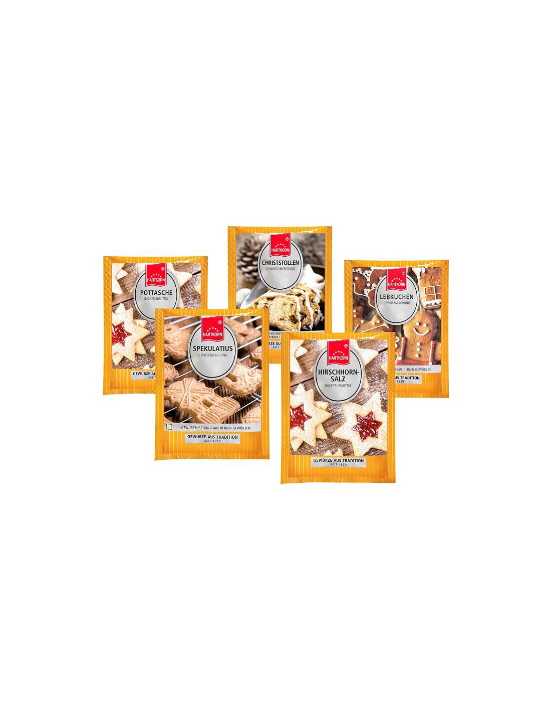 Oh du süße Weihnachtszeit! Bist du auch schon bereit für Spekulatius, Christstollen, Lebkuchen und Butterplätzchen? Dann geben wir dir mit diesem Gewürzset alles, was du für die süße Weihnachtszeit brauchst! Mit unseren praktischen Gewürzmischungen für Spekulatius, Christstollen oder Lebkuchen sorgst du im Handumdrehen für besten Geschmack. Mit unserer Pottasche und unserem Hirschhornsalz gehen deine zuckrigen Keksteige gleich noch besser auf!