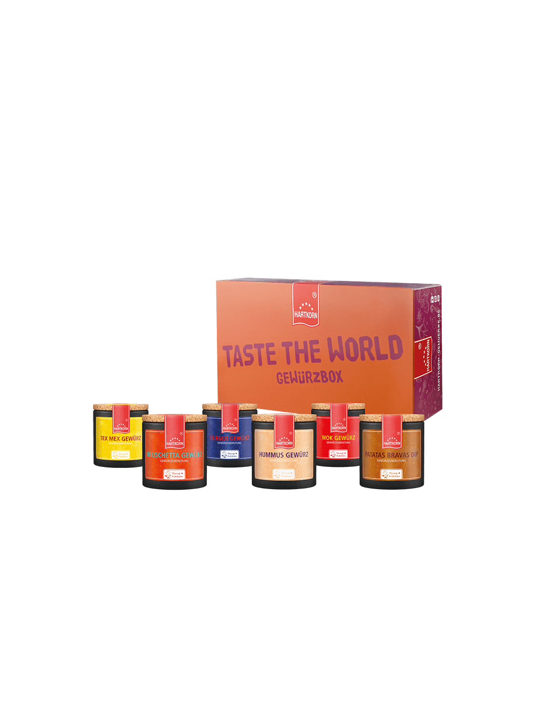 Einmal rund um den Globus: Mit der Taste the World Gewürzbox erleben deine Geschmacksnerven eine echte Weltumrundung. Von der Tex Mex Küche über saftige Burger, die mit dem passenden Gewürz erst so richtig derbe daherkommen, über einen Abstecher zum italienischen Bruschetta Gewürz gehts ohne Umschweife in den Mittleren Osten und damit zum Hummus Gewürz. Mit dem Wok Gewürz eroberst du die asiatische Küche genauso wie du beim nächsten kulinarischen Ausflug nach Spanien mit dem perfekten Patas Bravas Dip überraschst.