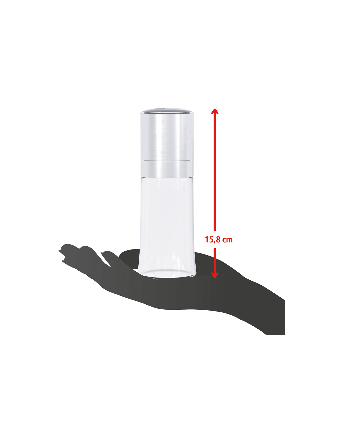 Wichtiger Anwendungshinweis: Um den Körnungsgrad nach Belieben einzustellen, einfach den durchsichtigen Deckel abnehmen und durch festdrehen oder lockern der Flügelschraube den Körnungsgrad einstellen. Aber Vorsicht: Wenn Sie die Flügelschraube zu fest anziehen, steht das Keramikmahlwerk unter so hoher Spannung, dass die Gefahr besteht, dass die Keramik brechen könnte!