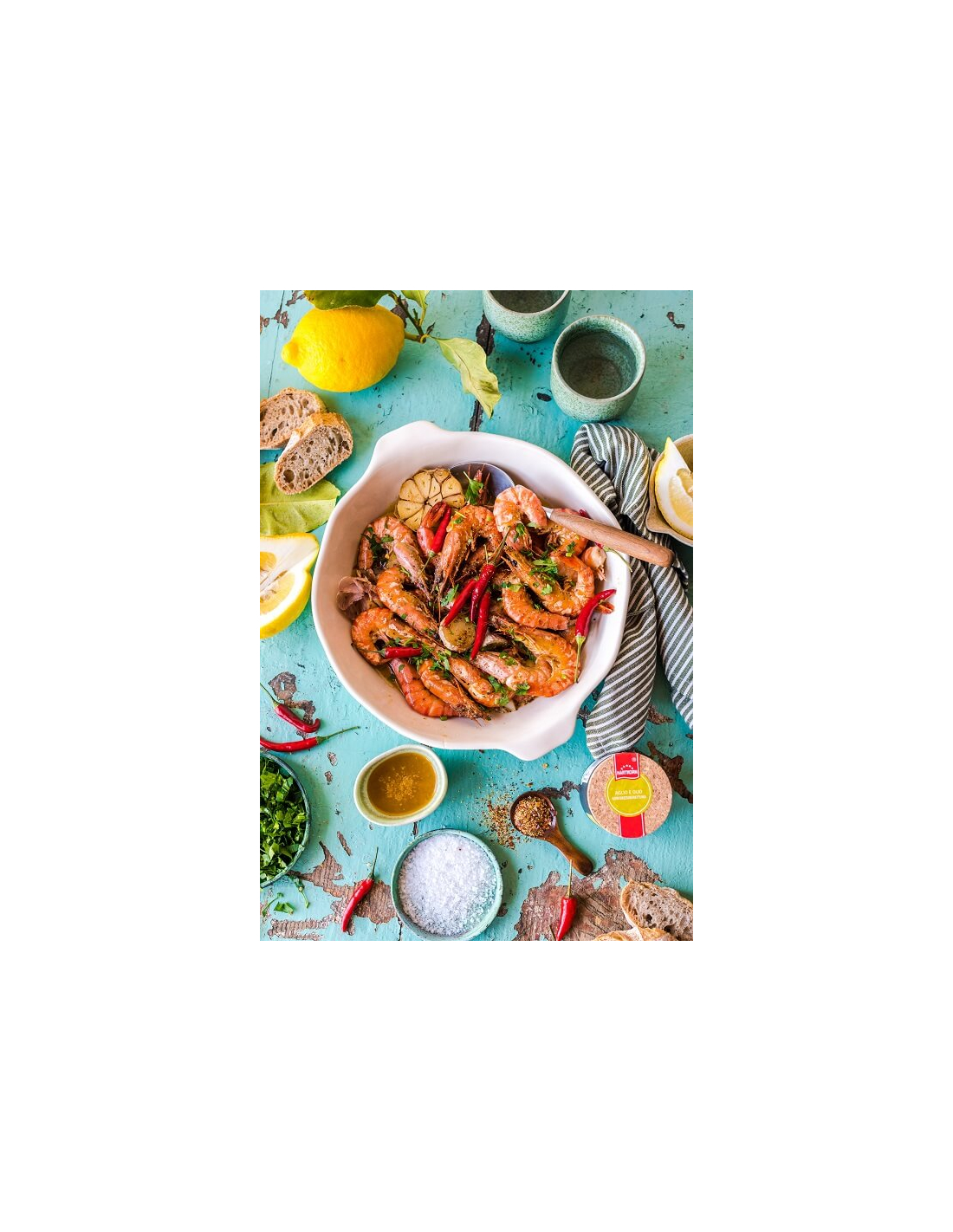 7. Zusammen mit den Garnelen und den Zitronenscheiben servieren. Dazu passt frisches Baguette.