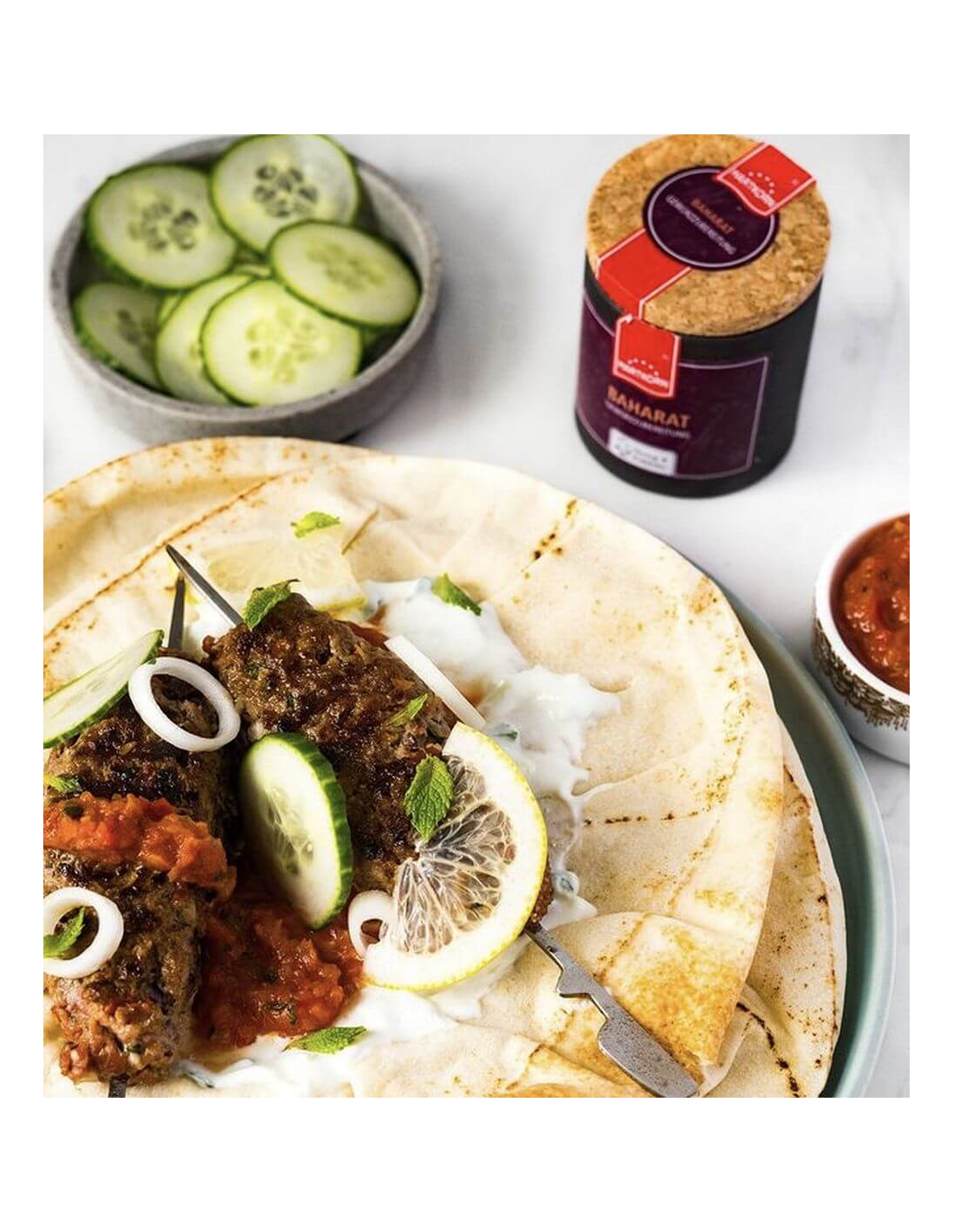 Lust auf ein kleines kulinarisches Abenteuer? Dann lass dich mit dem Geschmack unserer Baharat Gewürzmischung entführen in die Welt der arabischen Märchen aus 1000 und einer Nacht. Mit ihrem kräftig-würzigen Aroma aus Paprika, Pfeffer, Chili, Kreuzkümmel, Koriander, Kardamom, Muskatnuss und Nelken wird die Mischung durch die süße Note des Zimt Cassia und den feinen Geschmack des Meersalz perfekt abgerundet. Damit eignet sich Baharat besonders gut zum Würzen von Hackfleisch, Lamm oder Hühnchen.
