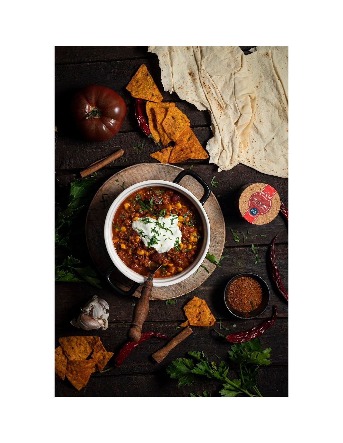 Boom! Hier wartet etwas ganz Besonderes auf dich! Die perfekt aufeinander abgestimmte Komposition aus Chili, Kreuzkümmel, Paprika edelsüß, Oregano, Zimt Cassia, Piment, Kakao, Knoblauch, Paprika geräuchert und Meersalz sorgt in unserer Gewürzzubereitung beim gleichnamigen Party-Klassiker Chili con Carne für den nötigen Zunder. Entwickelt haben wir diese Rezeptur übrigens mit Felix Schäferhoff von Felix' Kochbook.