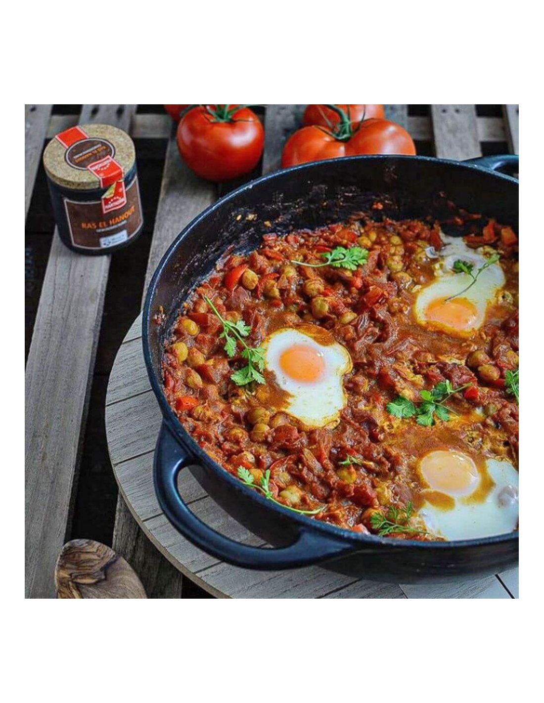 Ras el Hanout ist eine arabische Gewürzkombination vereint Pfeffer, Kreuzkümmel, Muskat, Kurkuma, Koriander und weitere Gewürze zu einer unvergleichlichen Mischung.