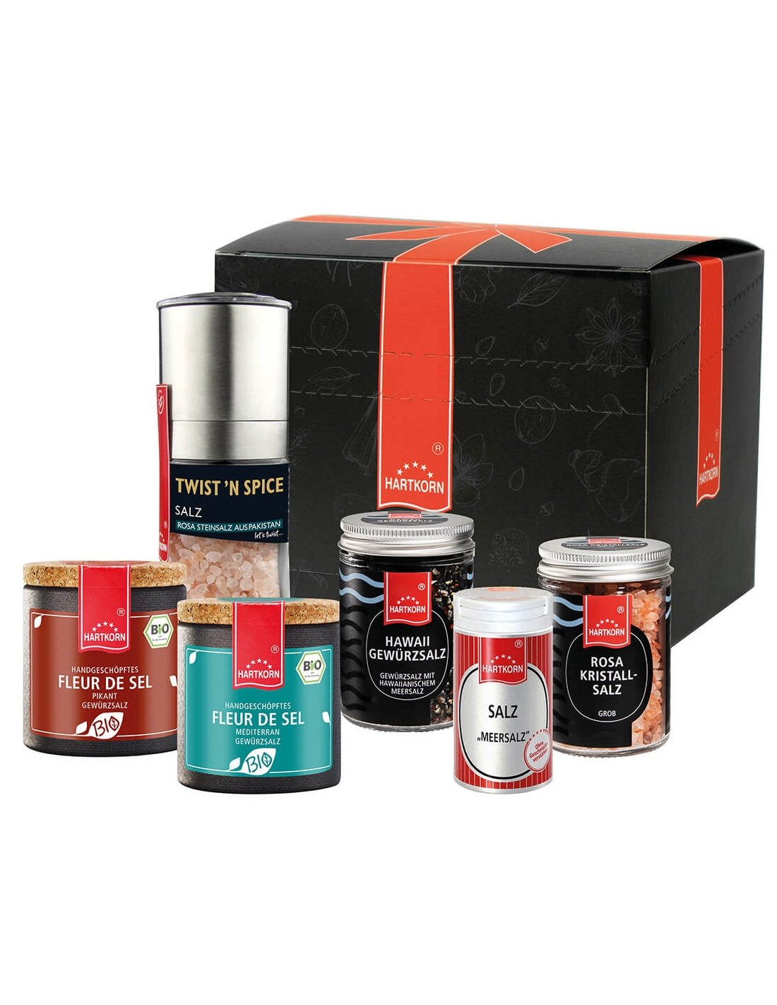 Dieses würzige Sextett kommt in einer eleganten und formschönen Box zu Ihnen nach Hause. Salz in der Wunde ist unangenehm, Salz im Set überhaupt nicht! Denn im Gegensatz zum Einzelkauf sparen Sie hier richtig Geld! Was will man mehr? Günstige Gewürze in gewohnter Hartkorn Qualität zum Verschenken oder Kennenlernen. Guten Appetit!