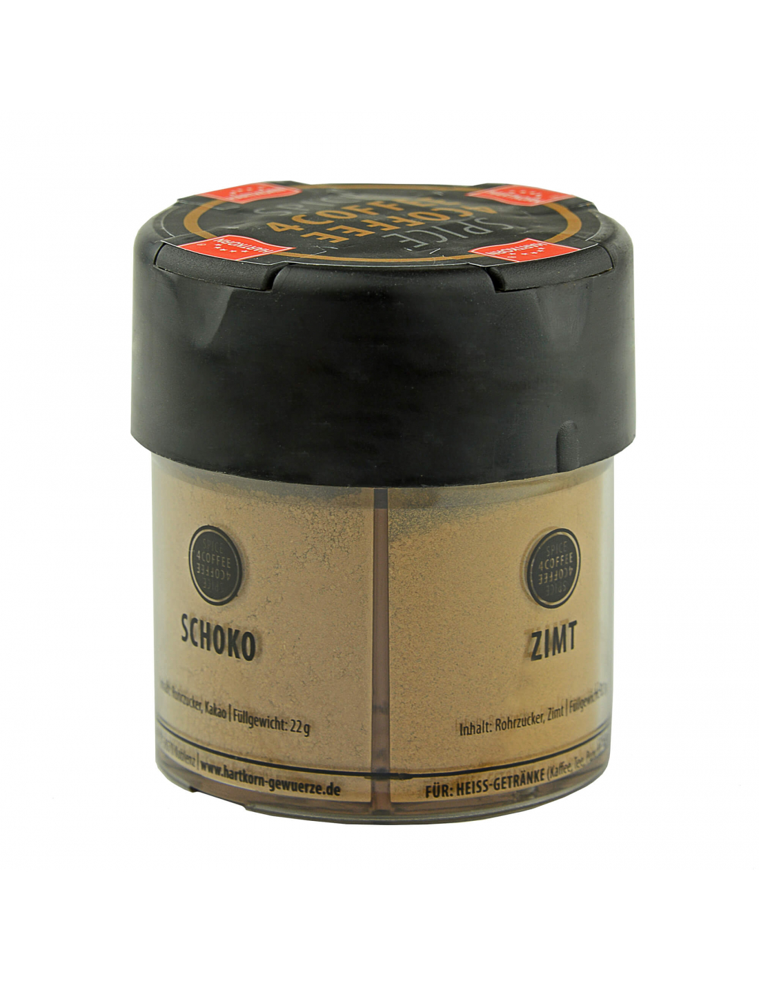 Chocolate: Finest cocoa powder with cane sugar for a chocolate note in the coffee
